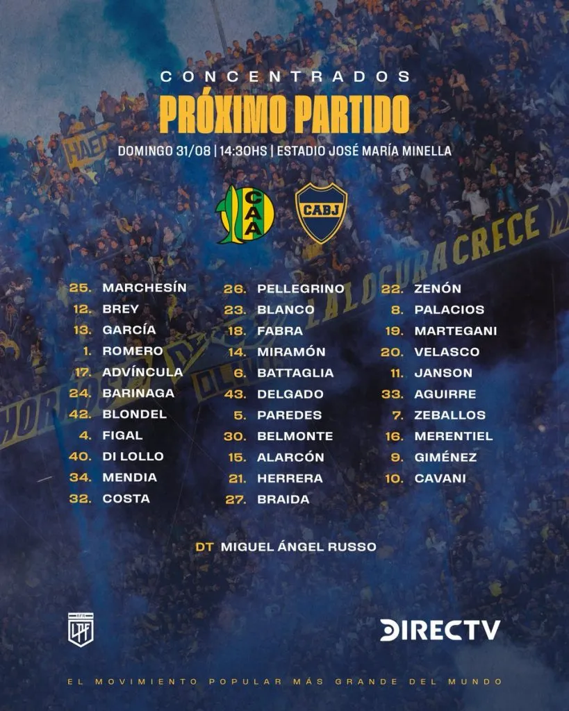 Pero pensando en el partido, el DT ya dio el primer paso. Este sábado, como es habitual Russo entregó la lista de citados, con una metodología que se vuelve a repetir. Para viajar a la ciudad costera, el técnico decidió convocar a todos los jugadores del plantel, salvo Cristian Lema, borrado por el propio Russo.