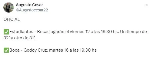 En las últimas horas, se definió cuándo se volverá al duelo el duelo entre Estudiantes de La Plata y Boca. Este enfrentamiento se llevará a cabo el viernes 12 de abril a las 19:30 y la última fecha de la Copa de la Liga será el lunes 15 y martes 16 donde se terminarán de definir los clasificados.