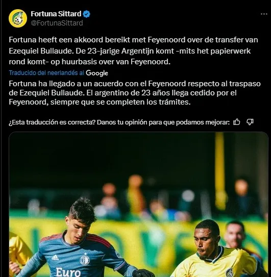 Ezequiel Bullaude regresó al Feyenoord de Holanda tras su paso a préstamo por Boca. Y, al no ser tenido en cuenta en su club, el volante se fue cedido una vez más siendo su destino el Fortuna Sittard de la misma Eredivisie. Club fundado en 1968 el cual nunca fue campeón, tiene un estadio con capacidad para 13.000 personas y ascendió a la Primera División de Holanda en 2018.