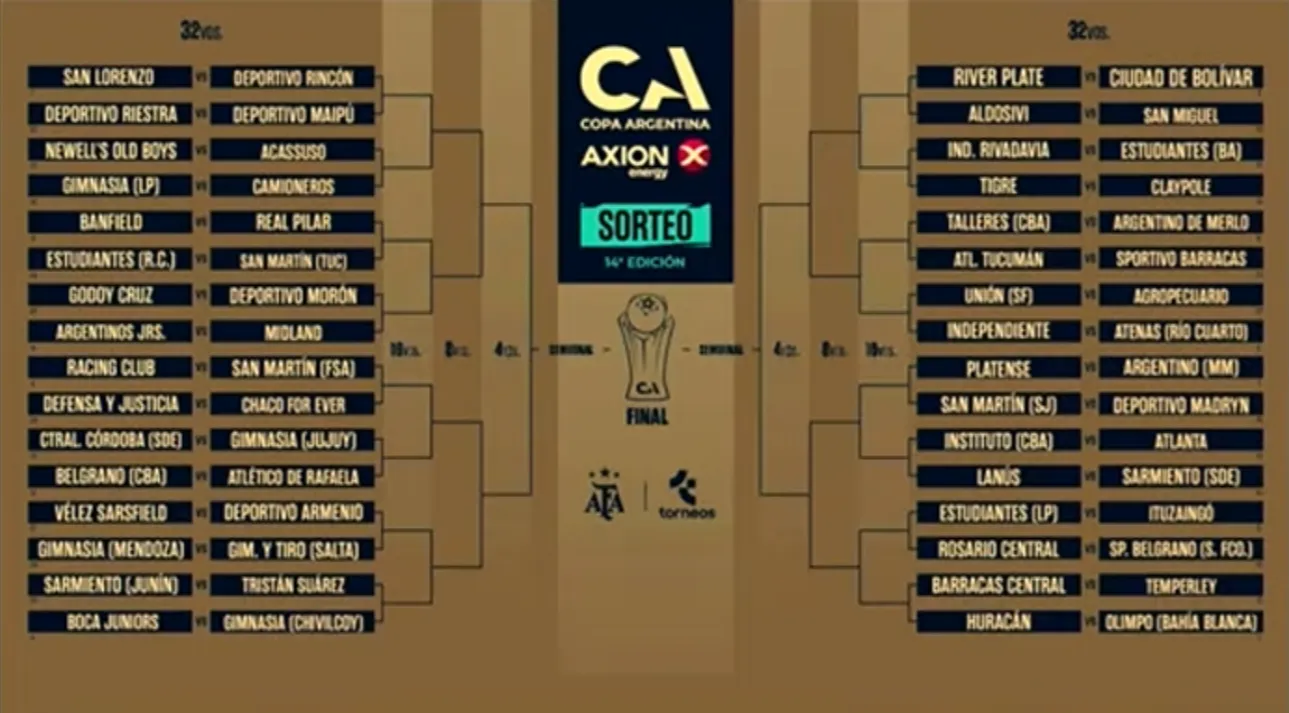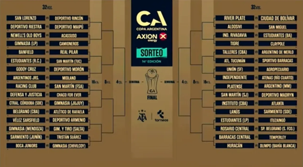 Boca enfrentará a Gimnasia de Chivilcoy en 32avos de final de la Copa Argentina. En caso de ganar, el equipo enfrentará a Sarmiento de Junín o Tristán Suárez. Vélez también está muy cerca y podría enfrentar al Xeneize en octavos de final. El primer grande al que podría enfrentarse sería Racing en semifinales del torneo.