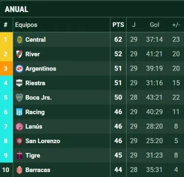 ¿Cómo está Boca en la Tabla Anual?