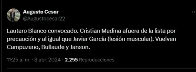 Según pudo revelar el periodista Augusto César, el juvenil xeneize no concentra para el próximo partido de Boca únicamente por precaución. Cabe recordar que Medina sufrió un golpe en el partido ante Newell´s y salió reemplazado.