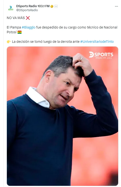 Un rival de Boca en la Copa Sudamericana se quedó sin DT a mitad de competencia y deberá buscar un nuevo entrenador para ls próximos compromisos del Grupo D. Se trata de Nacional Potosí, que despidió al argentino Claudio Biaggio en las últimas horas.