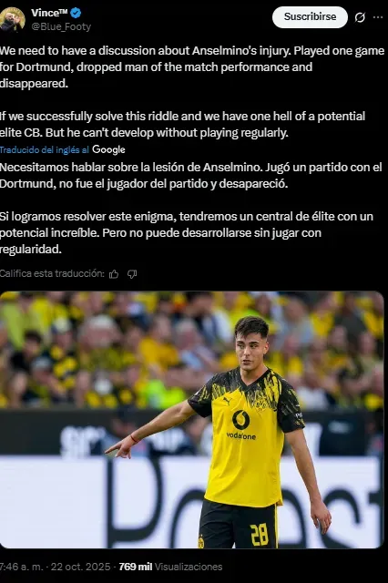 Aaron Anselmino había tenido un arranque muy prometedor en Borussia Dortmund a préstamo desde el Chelsea. La rompió en su debut contra Unión Berlín y se fue aplaudido a principio de temporada, pero una lesión muscular le jugó una mala pasada.