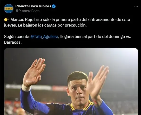 Sin embargo, según la fuente citada, el defensor llegaría sin problemas al partido contra Barracas Central del próximo domingo. Cabe recordar que Rojo viene fue titular en los últimos 6 partidos de Boca y completó los 90 minutos en 5 de ellos.