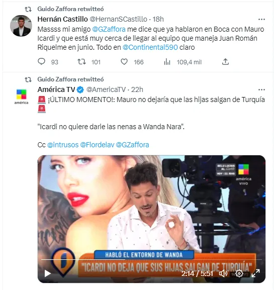 Minutos más tarde, el conductor reconoció que la información venía de la mano del periodista Guido Zaffora, quien se dedica a la sección ‘espectáculos’ y cubre la actualidad de la relación entre Mauro Icardi, Wanda Nara y detalles de su situación personal.