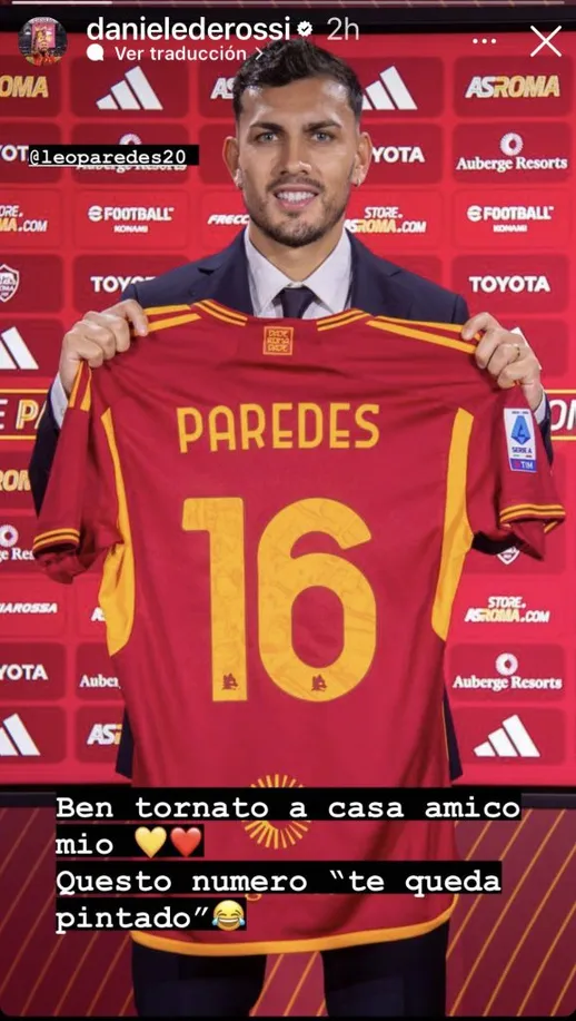 Y esa relación sigue intacta. Ahora, Leandro vuelve a Roma y hay un detalle particular: usará la histórica ’16’ que pertenecía a Daniele. Esto fue por un pedido explicito del ídolo de la institución italiana. “Nunca hubiera permitido que sucediera sin el permiso de Daniele. Me envió un mensaje para decirme que estaría encantado que use ese número. Será un honor para mí, le tengo un gran respeto”, contó Leandro.