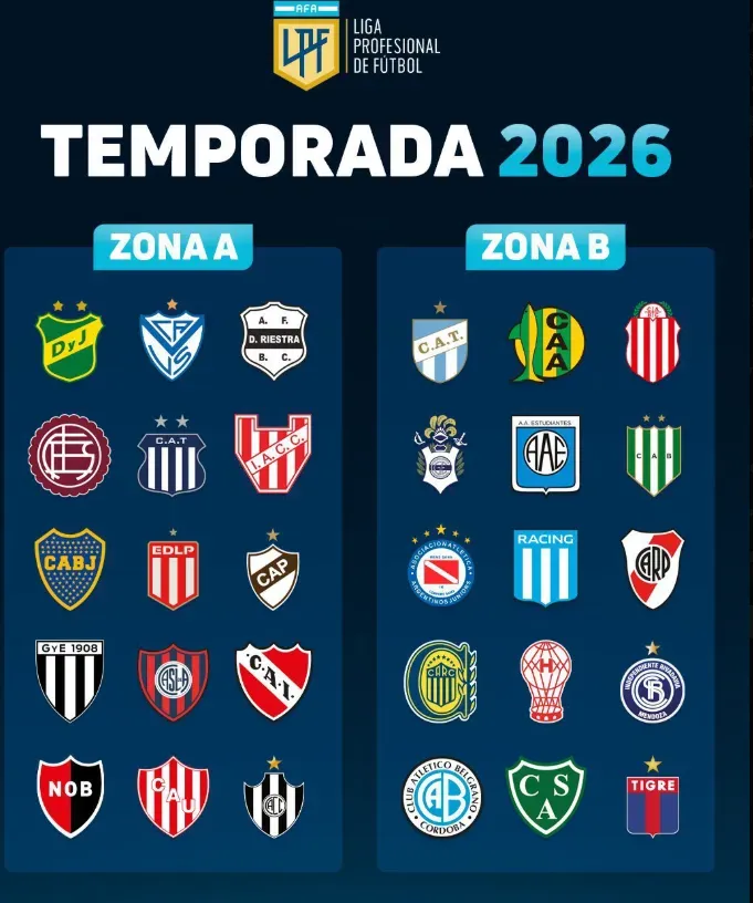 Serán 16 fechas donde se incluirán dos partidos interzonales, uno de ellos el Superclásico pensando en el Xeneize. Clasifican los 8 primeros a octavos de final, y es local el mejor ubicado. Las localías en los clásicos serán iguales a las del 2025, por lo que se jugará el primer Superclásico en el Monumental y el segundo en La Bombonera. A continuación, cómo quedaron las zonas del Torneo Apertura 2026.