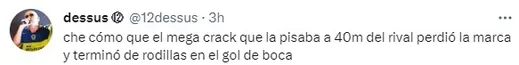 “¡Buen día, Xeneizes!”, escribieron desde el Xeneize. Lo llamativo no es el breve enunciado, sino la imagen que lo acompaña, en la que se observa a Santiago Montiel de rodillas en la jugada del gol. Los hinchas no lo dejaron pasar por alto y apuntaron contra el defensor que protagonizó uno de los momentos más picantes junto a Darío Benedetto.