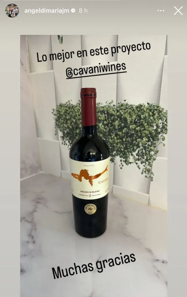 En las últimas horas, fue justamente el turno de Ángel Di María. Quien no solo recibió un vino de la marca del Matador, sino que también se encargó de hacerlo saber a través de sus redes sociales con un mensaje para el goleador de Boca: “Lo mejor en este proyecto “@Cavaniwines”.