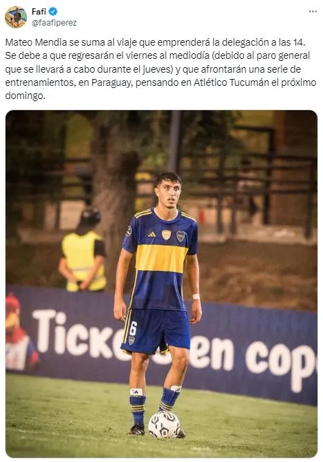 Una de las pruebas fehacientes de esta decisión se dio a horas del duelo ante Sportivo Trinidense ya que el defensor formará parte de la delegación que emprenderá vuelo hacia Paraguay. El periodista Facundo Pérez dio más detalles y reveló que esto se debe a que el plantel “regresará el viernes al mediodía y afrontará una serie de entrenamientos en Paraguay pensando en Atlético Tucumán“.