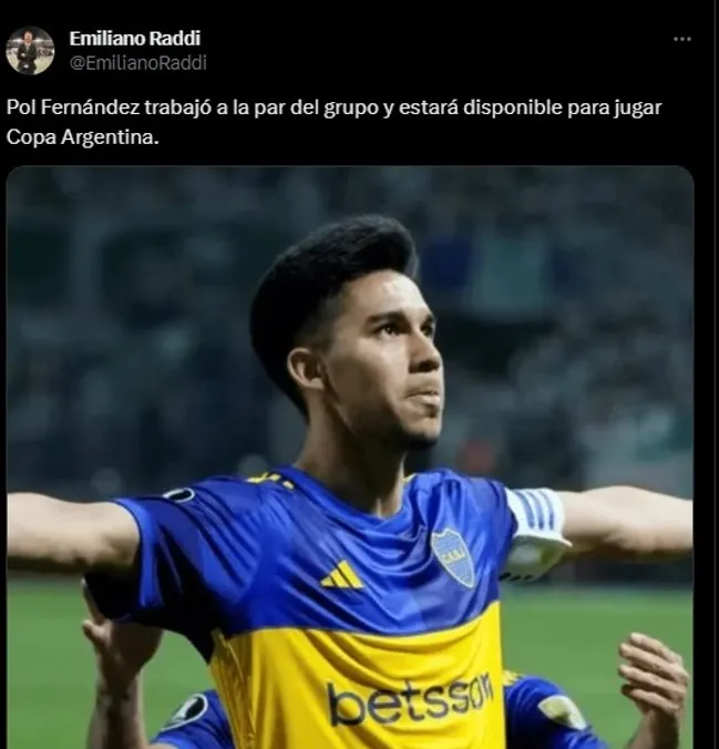 Sin embargo, y como bien pudo informar Emiliano Raddi en su cuenta de Twitter, se reveló que el mediocampista xeneize estuvo a la par de sus compañeros esta mañana y está “disponible” para el encuentro decisivo contra el Pincha en la ciudad de Córdoba.