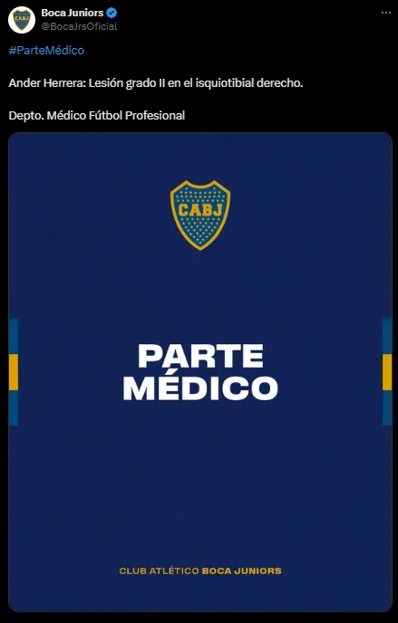 Boca se prepara para el próximo compromiso del Torneo Apertura frente a Unión y hay una baja confirmada para el encuentro. Ander Herrera no viajará para el duelo ante el Tatengue. Terminó con un dolor en la zona lumbar tras el empate ante Argentinos pero ahora el club confirmó que tiene otra lesión más complicada.