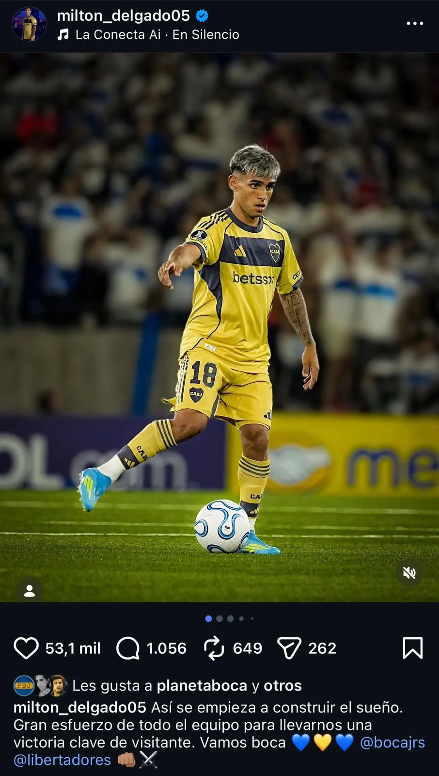 El posteo de Milton Delgado en Instagram tras la victoria de Boca: “Así se construye el sueño”