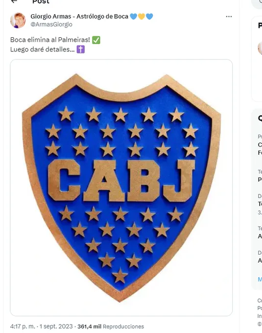 Y siguió: “Boca tiene que aprovechar eso. Es una super fecha, alineada con protección en Venus. Así como le pasó a Corinthians con Estudiantes”. Además, sobre la serie ante Racing comentó: “La luna en Piscis en el segundo tiempo a Racing lo liquidó, no le convenía y Boca se hizo poderoso. Los penales le pasaron rapidísimo”. En su cuenta de Twitter, fue terminante con el resultado de la serie que se viene.