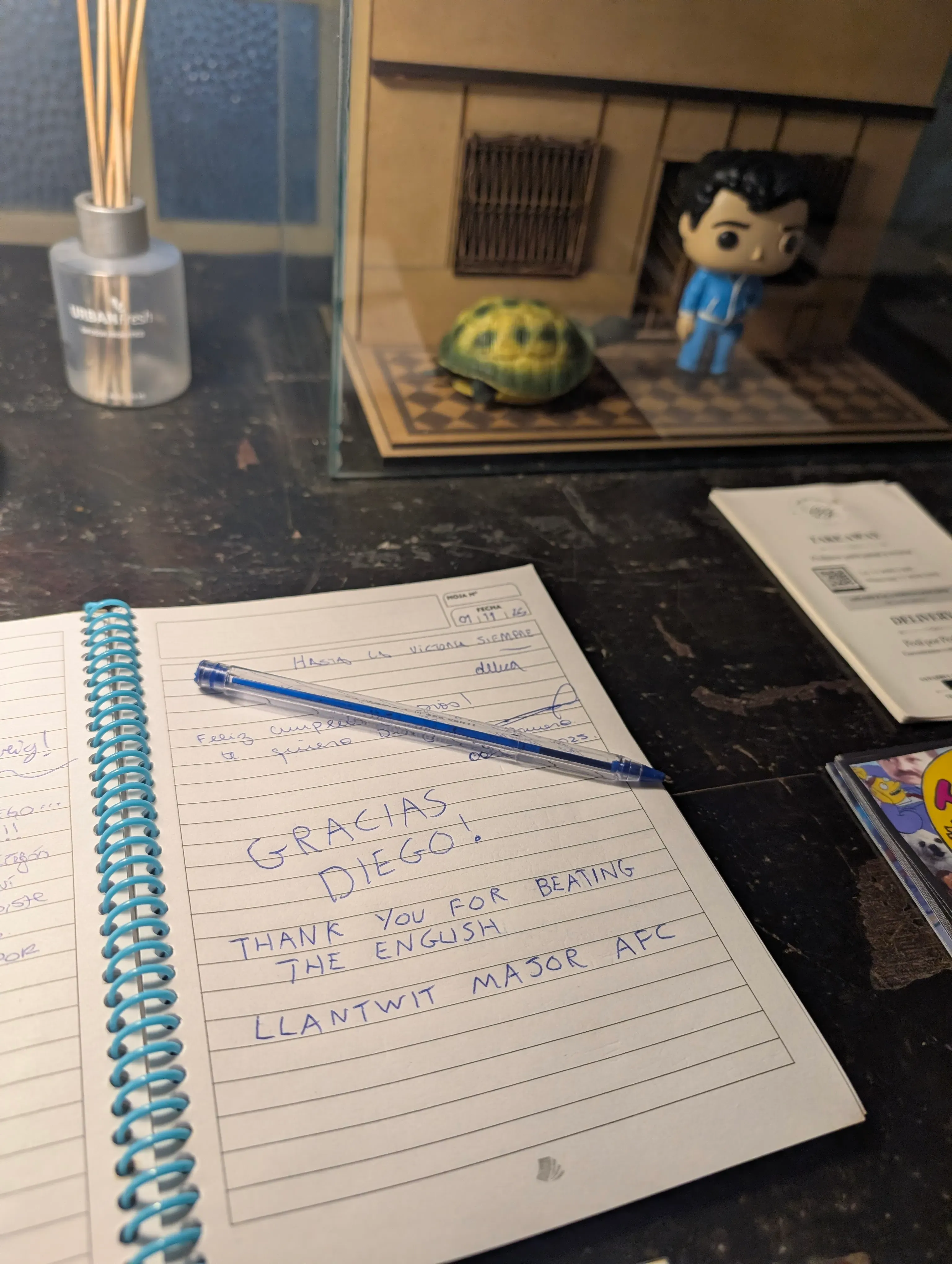 En su visita al país, Ben Dudley recorrió también la cancha de Argentinos Juniors, un club de vínculo histórico con Boca y el primer hogar de Diego Armando Maradona. En el estadio del Bicho existe un santuario en su homenaje. Allí, los visitantes pueden dejar sus mensajes en una libreta. Dudley, después de viajar 11.000 kilómetros, escribe: