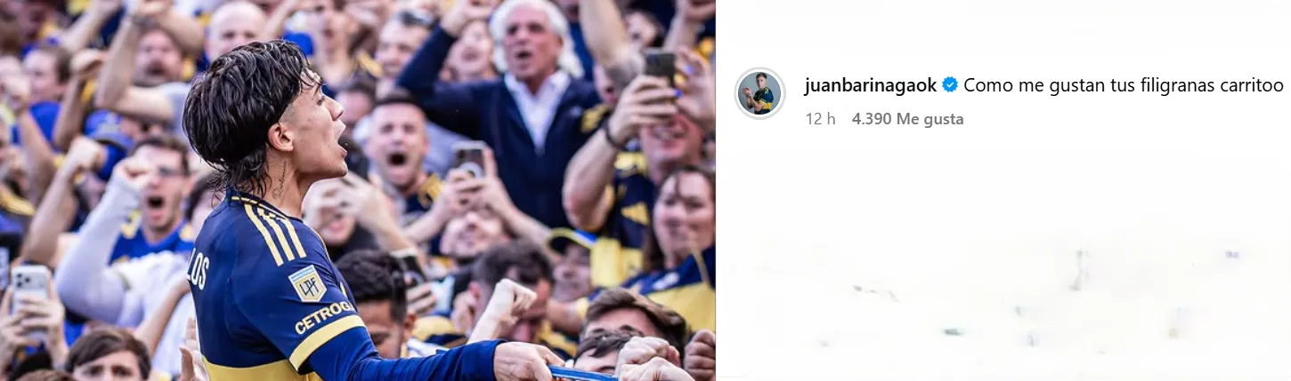 Luego del partido, Zeballos decidió compartir algunas fotos de su espectacular festejo con la gente de Boca. El posteo en Instagram se llenó de comentarios, pero el de Juan Barinaga fue el que enloqueció a los hinchas Xeneizes.