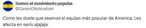 Cómo era de esperarse, causó la risa de todos los hinchas de Boca. Y los dichos del dirigente riverplatense fueron motivo de burlas y memes en las redes sociales: “Llanto“, “Le movimos el cerebro“, y “Díganle que sí“.