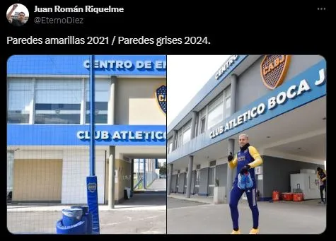 Así como descubrieron que esta imagen sería de hace unos años, otro usuario encontró un aspecto más: la fachada en las paredes del predio. Desde la cuenta @EternoDiez publicaron dos fotografías con una diferencia notable en la pintura. En la foto de Benedetto, hay paredes amarillas y en la actualidad, las mismas se encontrarían de amarillo.