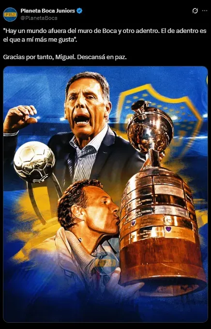 A partir de ahora, la obligación será mantener viva la esencia de Miguel y contarle a las próximas generaciones lo grande que fue para la historia de Boca.