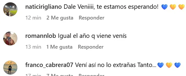 “No lo extrañes, venite y listo”, “Dale Paulito, te esperamos”, “Dale vení, te estamos esperando”, fueron algunos de los comentarios que llenaron la publicación pidiendo por la llegada del futbolista cordobés a Boca. Aunque es poco probable que vista la camiseta del Xeneize en el corto plazo, los hinchas se mantienen más que ilusionados de que cumpla su deseo de venir al club.