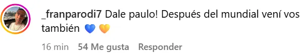 “No lo extrañes, venite y listo”, “Dale Paulito, te esperamos”, “Dale vení, te estamos esperando”, fueron algunos de los comentarios que llenaron la publicación pidiendo por la llegada del futbolista cordobés a Boca. Aunque es poco probable que vista la camiseta del Xeneize en el corto plazo, los hinchas se mantienen más que ilusionados de que cumpla su deseo de venir al club.