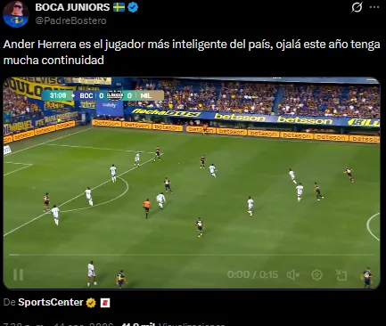 “Es el más inteligente“, “El mejor del fútbol argentino“, “Mirá esa calidad“, “Juega a otro deporte“, fueron algunos de los comentarios que recibió el español tras el encuentro en La Bombonera.