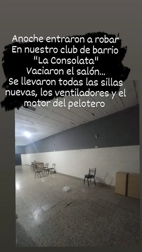 Esta noticia se dio a conocer en la última edición de la Revista Digital que publicó el Xeneize. Este lamentable hecho se dio a comienzos de mayo y en su cuenta de Facebook, este club ubicado en el Barrio Las Delicias, mencionó que su salón fue vaciado, sumado a que fueron robados algunas pertenencias como las sillas nuevas, los ventiladores y el motor del pelotero.