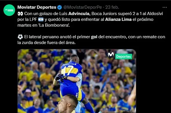 El tanto del defensor de Boca no tardó en repercutir en Perú, su país, de cara a la vuelta contra Alianza Lima. Y así reaccionaron algunos de los medios locales al golazo del jugador Xeneize a 2 días del importante partido.