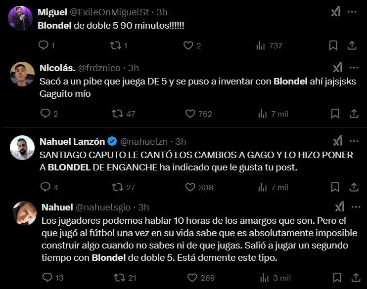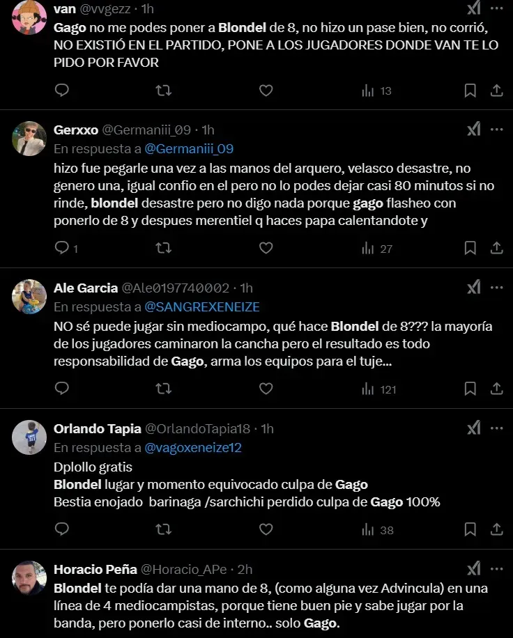 ¿La decisión de Gago? Poner como titular a Lucas Blondel como volante, jugador que naturalmente es lateral de punta derecho. Y quien además no venía jugando hace 4 partidos con Boca. Cómo era de esperarse, el ex Tigre no logró rendir y las redes sociales estallaron: “No se puede creer”, y “Se puso a inventar con Blondel”.