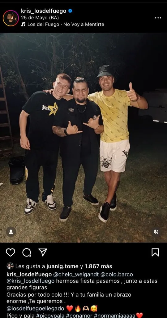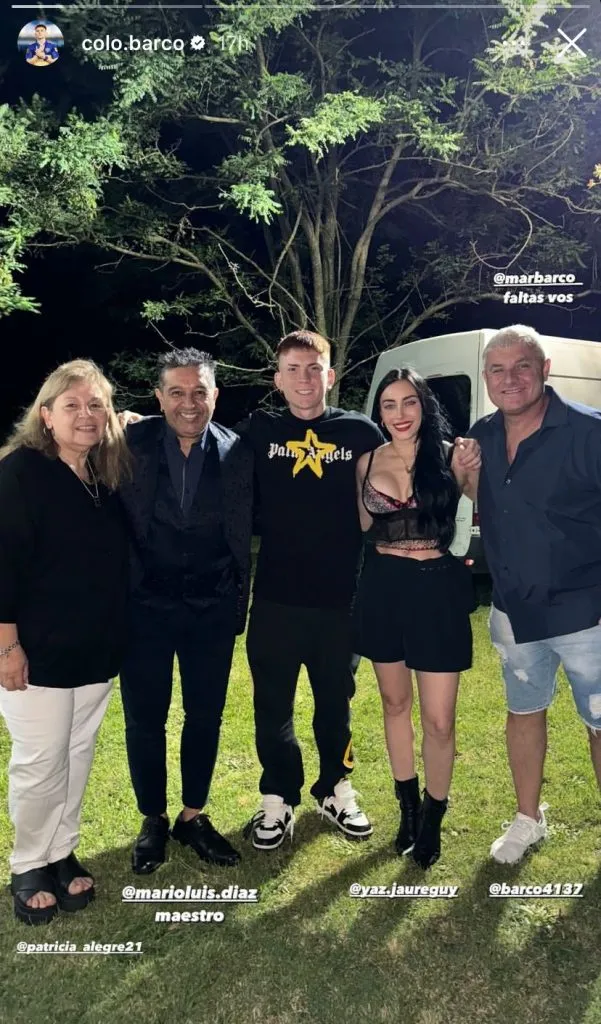 Yazmin Juareguy, novia de Barco, subió videos tanto de Mario Luis como de Los del Fuego tocando en vivo en el evento privado. Luego, Cristian Ramírez, cantante de la banda, subió una foto con Valentín Barco y Marcelo Weigandt.