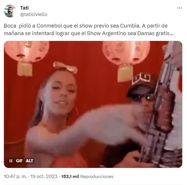 “Boca pidió a CONMEBOL que el show previo sea cumbia. A partir de mañana (viernes) se intentará lograr que el show argentino sea Damas Gratis”, contó el panelista de TyC Sports.