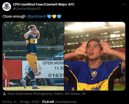El Llantwit Major F.C es un club del sur de Gales, parte del Reino Unido, usa los mismos colores que el Xeneize y dejó un guiño que involucra a su presidente. Durante el último empate del equipo en la segunda categoría de su país, su delantero Jack Bevan imitó el festejo del Topo Gigio que popularizó Riquelme.