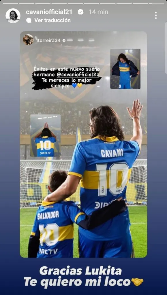 “Éxitos en este sueño hermano. Te merecés lo mejor siempre”, le escribió el volante al delantero. Y Edinson le respondió: “Gracias Lukita. Te quiero mi loco”. ¿Se juntarán en un futuro?