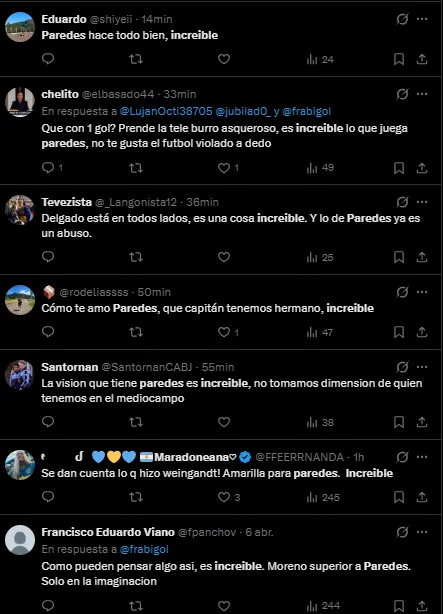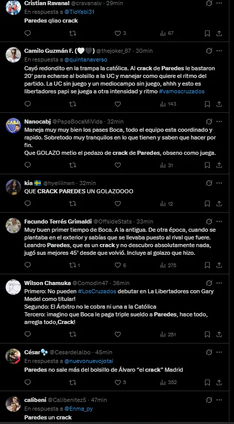 “Crack“, “Es increíble“, “Qué capitán que tenemos“, “La visión que tiene es increíble“, expresaron los hinchas en X (Twitter) luego del importante triunfo como visitante.