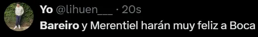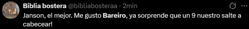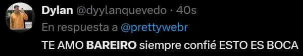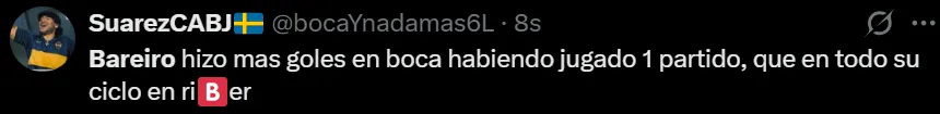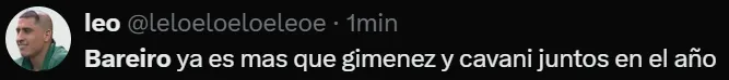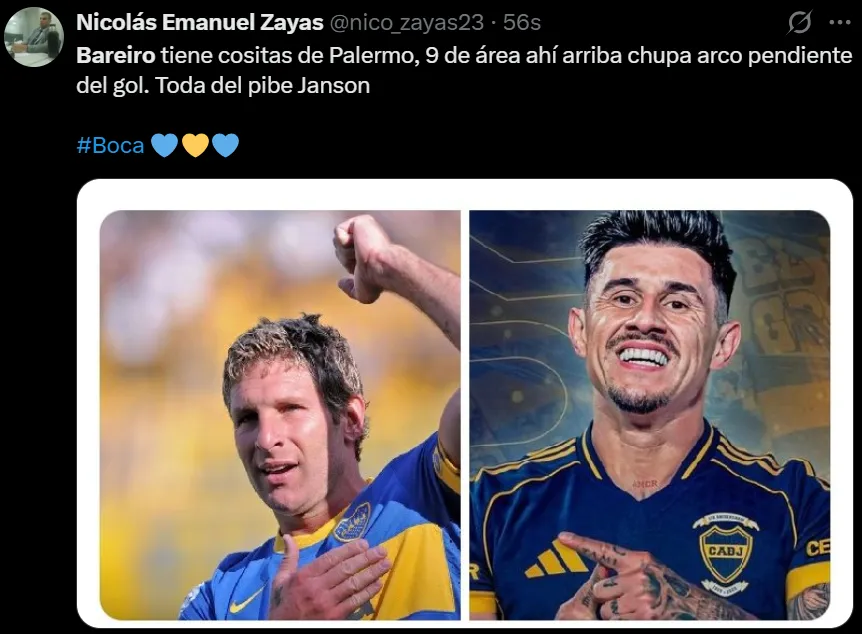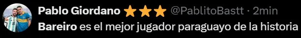 En ese sentido, los fanáticos no dudaron en sorprenderse ante el buen partido que hizo el delantero paraguayo y lo pidieron como titular para el sábado en La Bombonera. “Tiene que ser titular”, “Gracias y perdón Bareiro”, “Bareiro es el mejor jugador paraguayo de la historia” y “Te amo Bareiro, siempre confié, esto es Boca”, fueron algunos de los comentarios que hicieron los simpatizantes Xeneizes en X (Twitter).