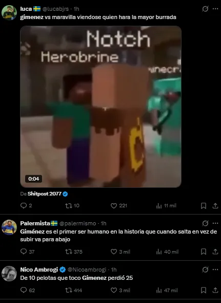“De 10 pelotas perdió 25“, “Insostenible“, “No gana nunca de arriba“, fueron algunos de los reclamos del Xeneize en X (Twitter). No hay dudas de que el 9 volvió a tener un rendimiento bajo y se lo hicieron saber en las redes sociales.