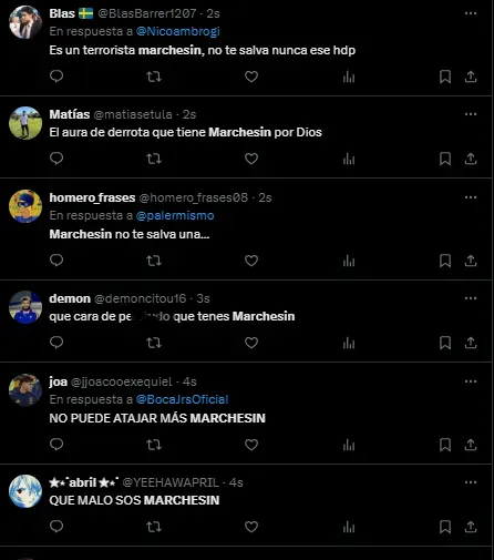 “No te salva una“, “Qué malo es“, “Malísimo“, fueron algunos de los comentarios de los fanáticos en X (Twitter) para el arquero. Su regreso no salió tal como quería luego de su lesión y no lo perdonaron.