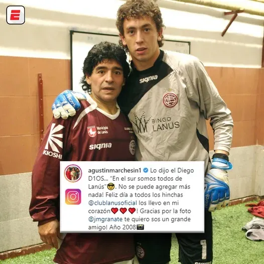 Pese a haber declarado que Messi es el mejor de todos, Diego Maradona también ocupa un lugar especial en el corazón de Agustín Marchesín. Tal es así que el arquero le dedicó un posteo en Instagram en una ocasión.