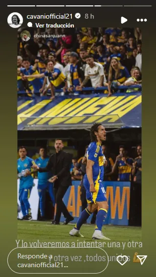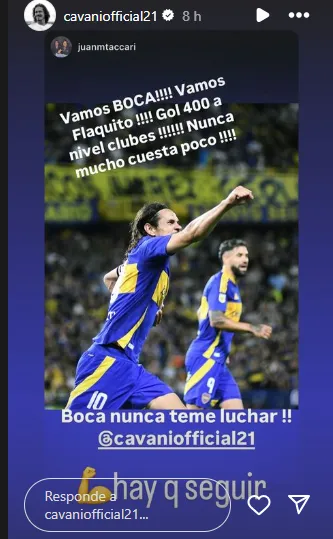 Una vez que finalizó el encuenro, subió historias a Instagram con fotos suyas y algunos mensajes. En una de ellas, lo felicitaron por llegar a los 400 goles y el Matador escribió “a seguir” junto con un emoji de fuerza. Después, junto a una de su gol, lanzó una reflexión: “Y lo volveremos a intentar una y otra vez, todos unidos“.