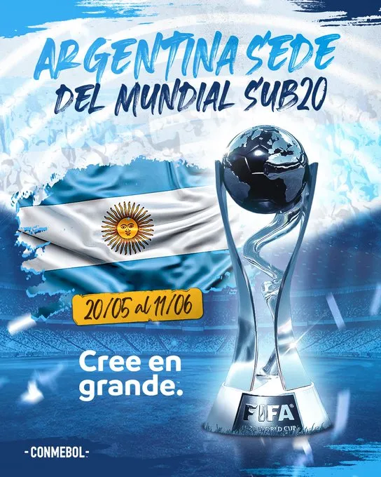Una de las noticias más importantes de la agenda futbolera es la confirmación de que Argentina será sede del Mundial Sub 20, que se jugará desde el 20 de mayo al 11 de junio en diferentes puntos de nuestro país.