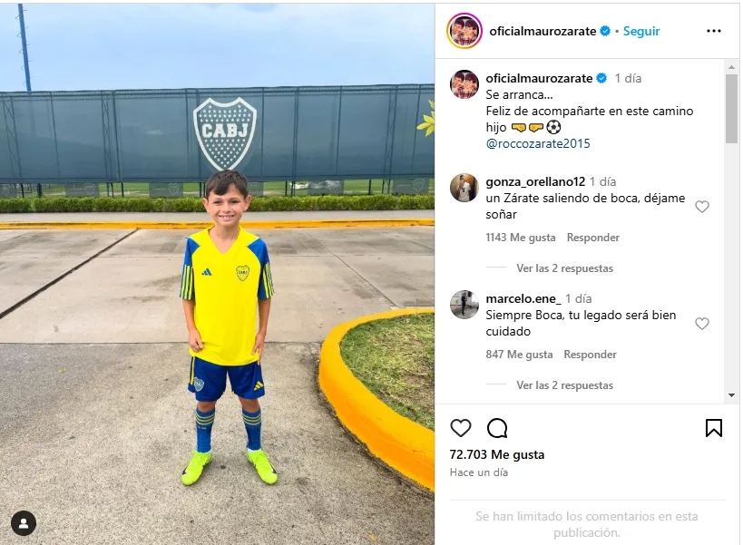 “Se arranca… Feliz de acompañarte en este camino hijo“, publicó Mauro Zárate en Instagram. Cabe aclarar que tanto él como sus hermanos Rolando y Ariel en su momento hicieron inferiores en Vélez, algo que ya prácticamente era una “tradición” familiar.