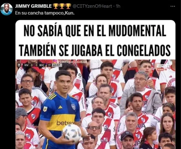 Como se mencionó, Boca no ganó únicamente en el campo de juego contra River el pasado fin de semana. También fue ampliamente superior en el duelo de hinchadas y eso se presenció tanto en el estadio como en la trasmisión de televisión. Ahora, después de la frase de Agüero, los hinchas del xeneize no dejaron pasar la oportunidad para burlarse.