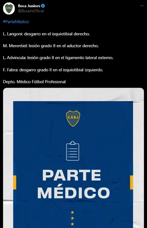 LA LISTA DE LESIONADOS DE BOCA