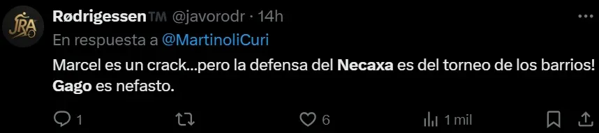 La derrota devino en una oleada de cuestionamientos al entrenador argentino por parte de los hinchas mexicanos. “En qué pensaba el dueño del Necaxa cuando contrató a este payaso triste”, “Triste para Necaxa pasar de un muy buen entrenador como Larcamón a un entrenador muy medianito como Gago”, “Ojalá Gago se vaya pronto del Necaxa”, fueron algunos de los comentarios que los hinchas hicieron sobre el rendimiento del equipo.