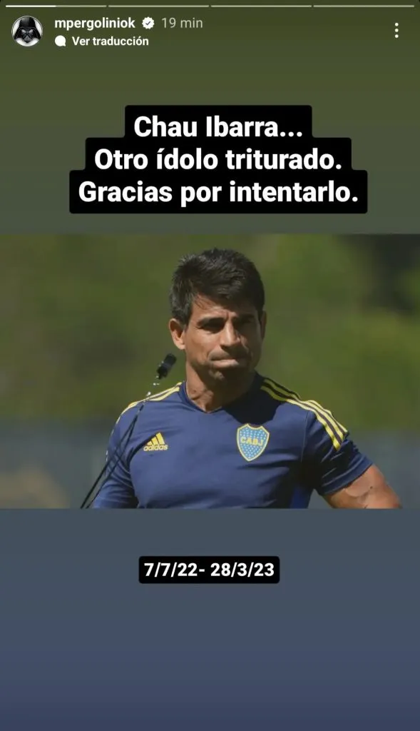 Consumada la partida del director técnico, Pergolini decidió volver a marcar su postura. Mario hizo un repaso de los últimos entrenadores, incluso poniendo las fechas de inicio y fin de cada ciclo, y cerró con una frase para el “Negro”: “Chau Ibarra… Otro ídolo triturado. Gracias por intentarlo”.