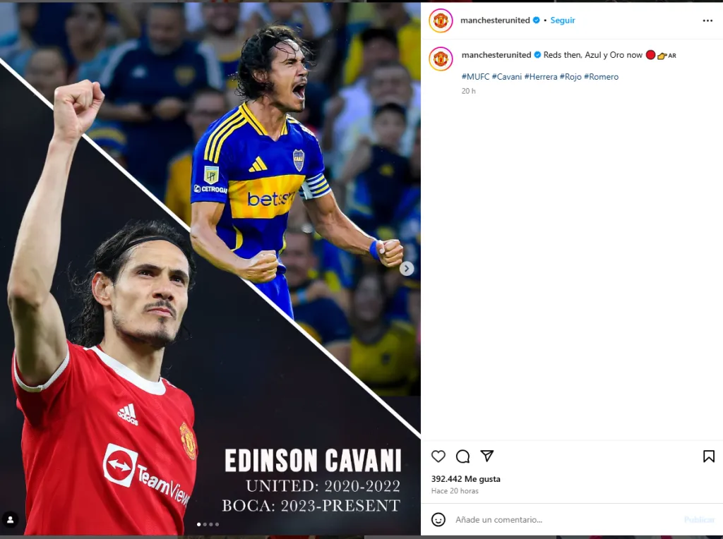 Justamente este viernes, a poco de comenzar el encuentro con Banfield, las redes del United publicaron fotos de los futbolistas que pasaron por el club y hoy visten al camiseta del Xeneize. Se trata de Edinson Cavani, Sergio Romero, Ander Herrera y Marcos Rojo, quienes llegaron a compartir plantel todos juntos en el equipo inglés.