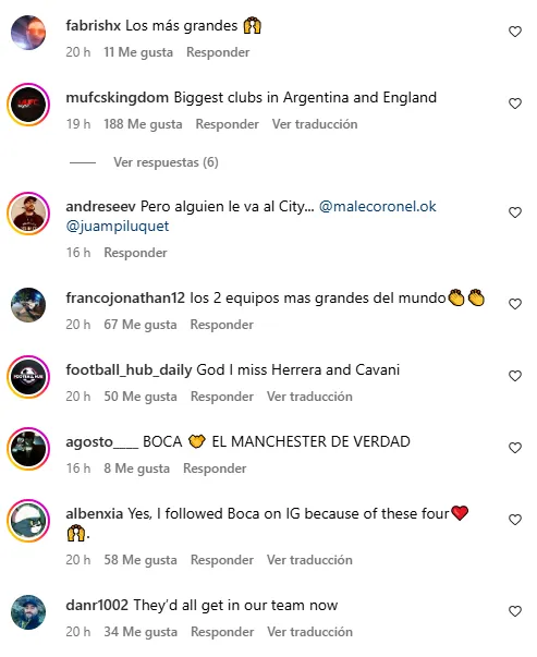 Los fanáticos de ambos equipos se mezclaron en los comentarios para celebrar el vínculo a través de estos jugadores. Algunos hasta se animaron a pedir por la vuelta de Cavani y otros a poner a Sergio Romero por encima de André Onana, actual arquero de los Diablos Rojos.