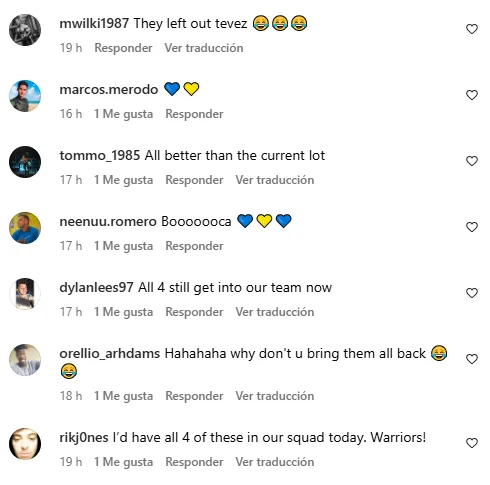 Si bien esta publicación se trataba del actual plantel del Xeneize, algunos nombraron a un ausente: Carlos Tevez. El nacido en Fuerte Apache jugó dos temporadas en el equipo inglés donde consiguió la Champions League, el Mundial de Clubes y varios títulos locales.