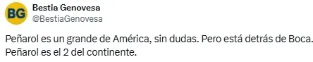 Sin embargo, en otras instituciones tienen una mirada totalmente distinta. A pesar de todos los logros obtenidos y la gran historia del Único Grande, en Peñarol lanzaron una polémica frase que podrían ser tomadas como una chicana y abrió el debate en el Xeneize.